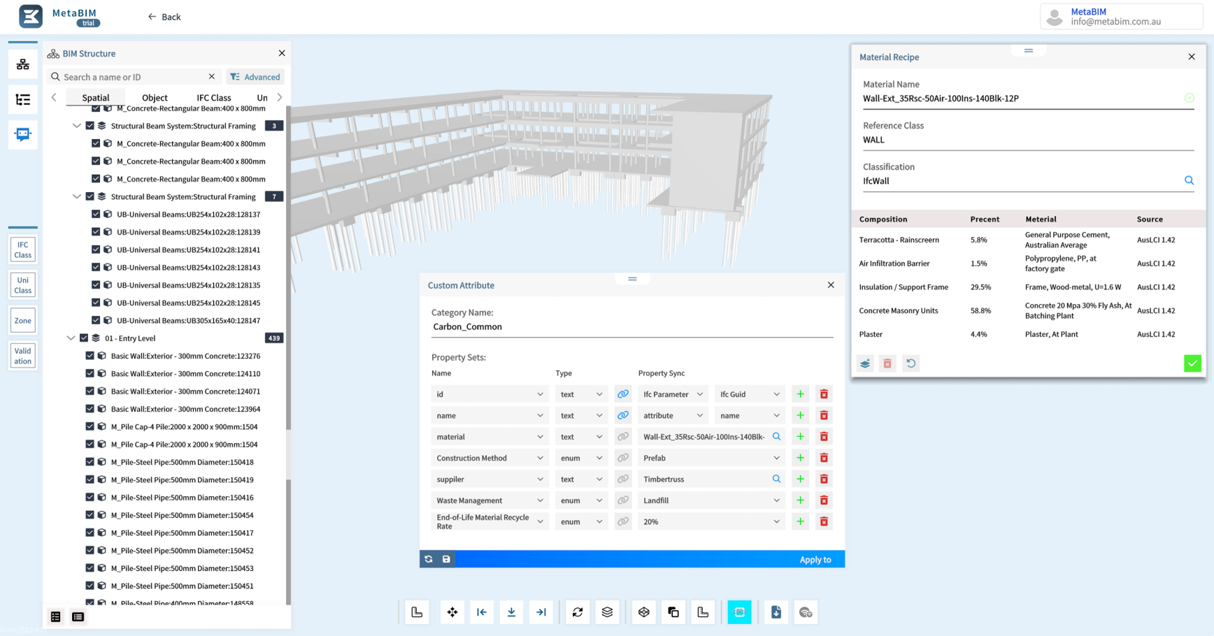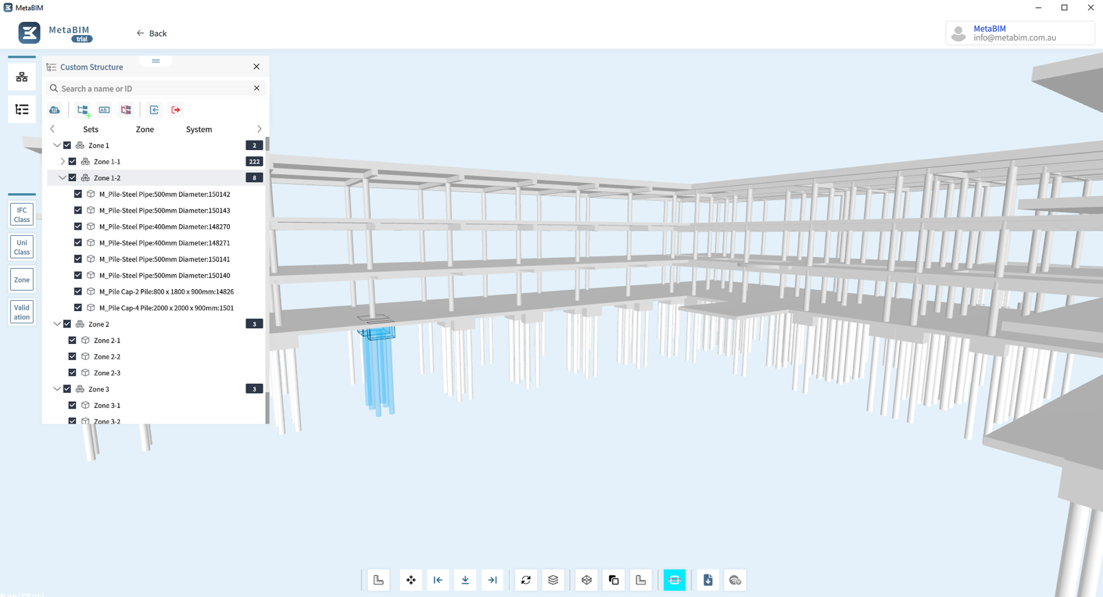 MetaBIM treats your model as a structured, queryable database—not just a 3D visualisation file. This approach allows for efficient data access, filtering, analytics, and sharing, making your BIM data far more powerful and usable across the project lifecycle.